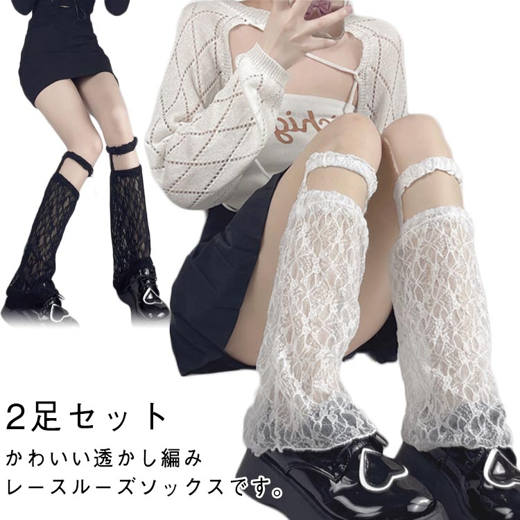 送料無料 ダンス衣装 レース レッグカバー シースルー 送料無料 レッグウォーマー 透かし編み ルーズソックス 子供 女の子 派手 ガールズ ブラック ホワイト