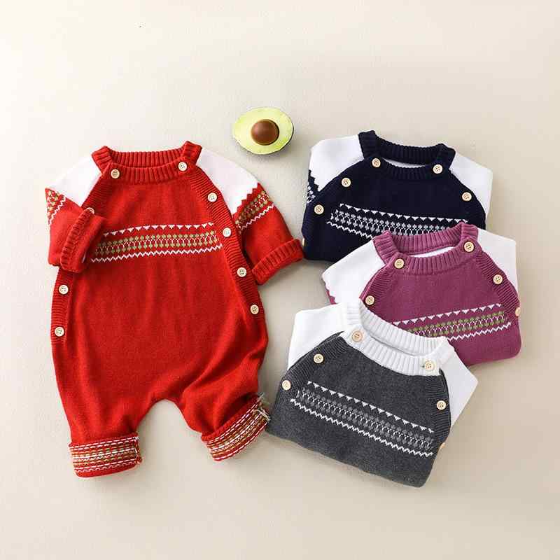 ロンパース ベビー・キッズ 男女兼用 長袖 綿 ニット 前開き 帽子付き 春秋冬 66cm 73cm 80cm 90cm 青 グレー 紫