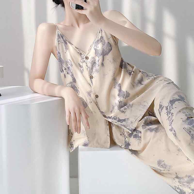 パジャマ レディース 春夏秋 セットアップ 綿 吊りキャミソール ズボン 2点セット ルームウェア 部屋着 寝間着 薄手 ゆったり かわいい 快適 リラックス おしゃれ