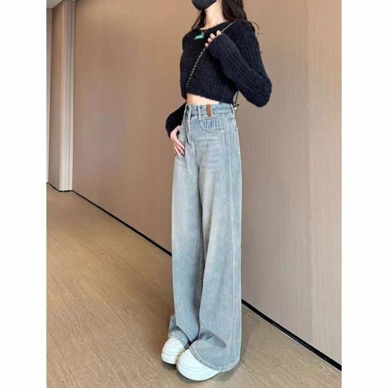 デニム レディース 大きいサイズ ワイドパンツ ハイウエスト ストレート ジーパン ズボン カジュアル ゆったり ロングパンツ ブルー