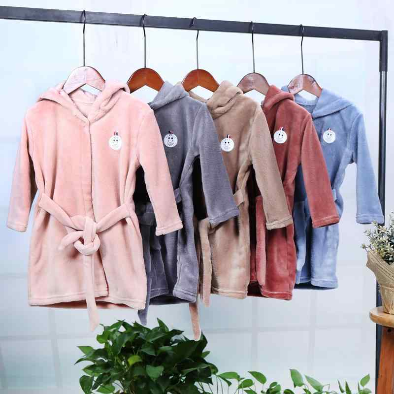 子供用バスローブ キッズ フランネル ガウン 厚手 男の子 女の子 ベビー パジャマ ミドル丈 ロング丈 ピンク グレー コーヒー 湖水色 ワインレッド 冬