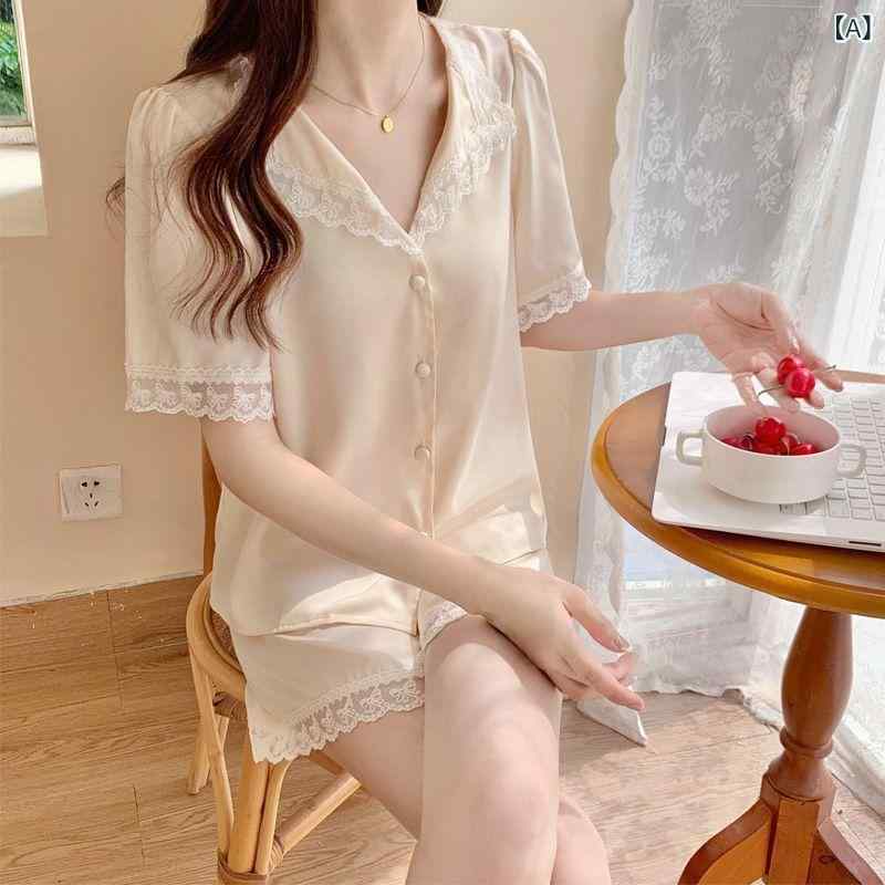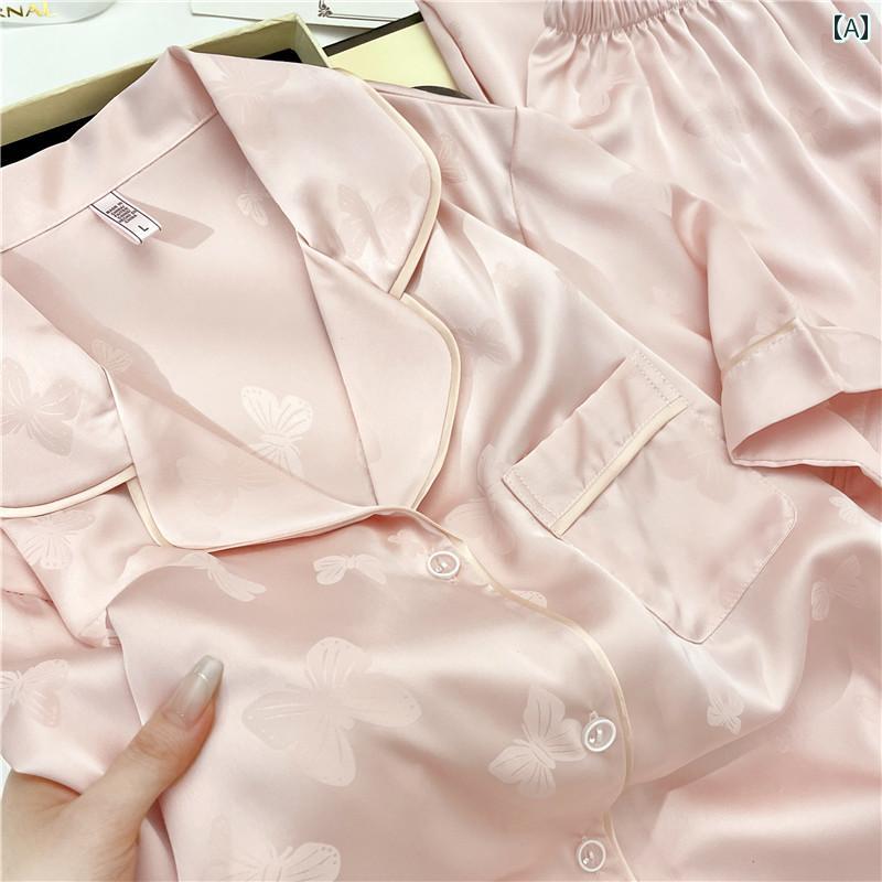 "シルク風 パジャマ つるつる ルームウェア ナイトウェア レディース " &quotシルク風 パジャマ つるつる ルームウェア ナイトウェア レディース &quot 女性用 胸 パッド 付き パジャマ 夏 春秋 冷感 涼しく 魅惑的 半袖 スーツ