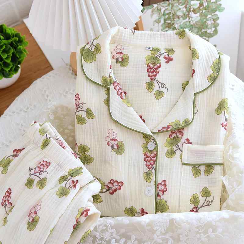 パジャマ ルームウェア レディース コットン 二重 ガーゼ 薄手 長袖 長ズボン 春夏秋 ゆったり 快適 ゴムウエスト