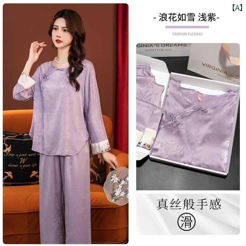 胸パッド 付き 新型 チャイナ風 パジャマ 女性用 春夏 2025 母の日 ルームウェア カジュアル おしゃれ かわいいパンツの長さ:ズボン適用シナリオ: パジャマ生地素材構成: ポリエステル繊維95%.ポリウレタン弾性繊維(スパンデックス)5%袖丈:長袖対象性別:女性サイズ: XXL M L XL