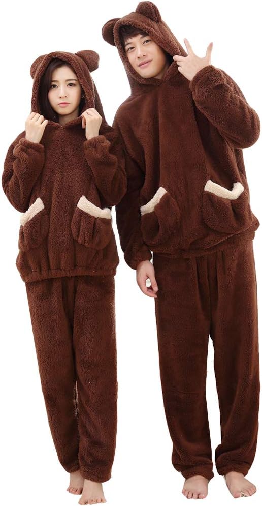 ロモハナガ ルームウェア パジャマ レディース ペアパジャマ カップル セット 冬 長袖 着る毛布 もこもこカップル パジャマ ペアルック 部屋着 くま耳 ふあもこ メンズ 寝間着 上下セット パジャ