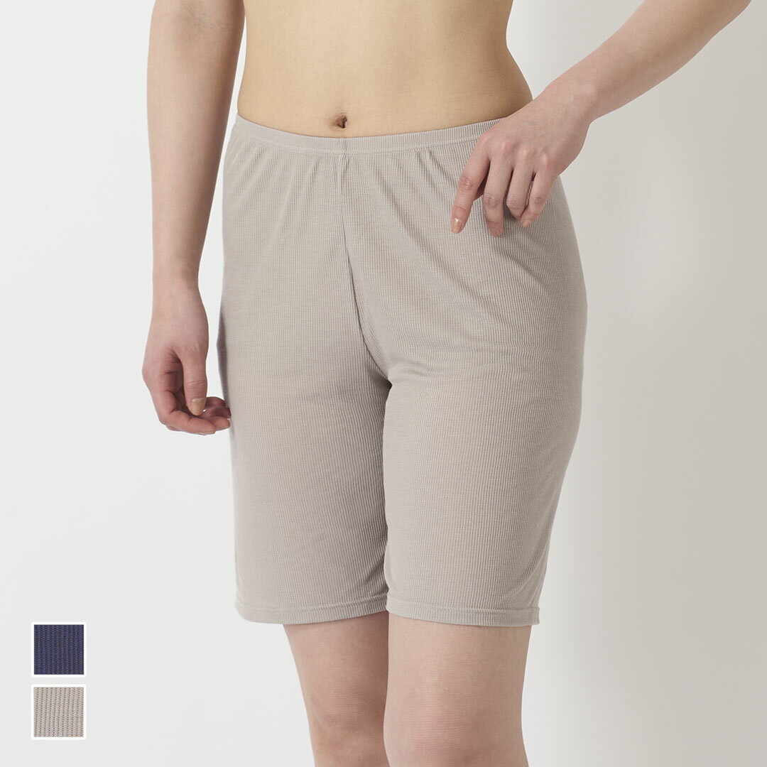 汗を吸収する夏の定番インナー、着るだけで簡単汗対策。伸びよくゆったりした着心地で、肌にまとわりにくく、サラサラした着用感です。スカートやパンツ、どのスタイルにも合わせやすく、汗染み対策は勿論、透け防止にも最適です。・脇の縫製無し縫製部分を極力減らしたゴロつきにくい設計。・吸水速乾、伸びよいリブ生地肌にまとわりつきにくい、快適な素材です。・安心の膝上丈洋服にも合わせやすく安心感のある丈感、お風呂あがりにもおすすめです。サイズ:M(ウエスト64〜70cm、ヒップ87〜95cm)、L(ウエスト69〜77cm、ヒップ92〜100cm)、LL(ウエスト77〜85cm、ヒップ97〜105cm)カラー:ネイビー、グレージュ材質:レーヨン65%、ポリエステル35%生産国:中国【洗濯上の注意】 ・洗濯ネットを使用してください。 ・無蛍光洗剤を使用してください。 ・つけ置きはしないでください。 ・色落ちする場合がありますので他のものと一緒に洗わないでください。 ・洗濯後は直ちに形を整えて干してください。 ・洗濯した際に多少縮む場合があります。 ・汗や雨など湿った状態や摩擦により色落ちする場合がありますので注意してください。 ・高温多湿を避け、通気性のいい場所に保管してください。