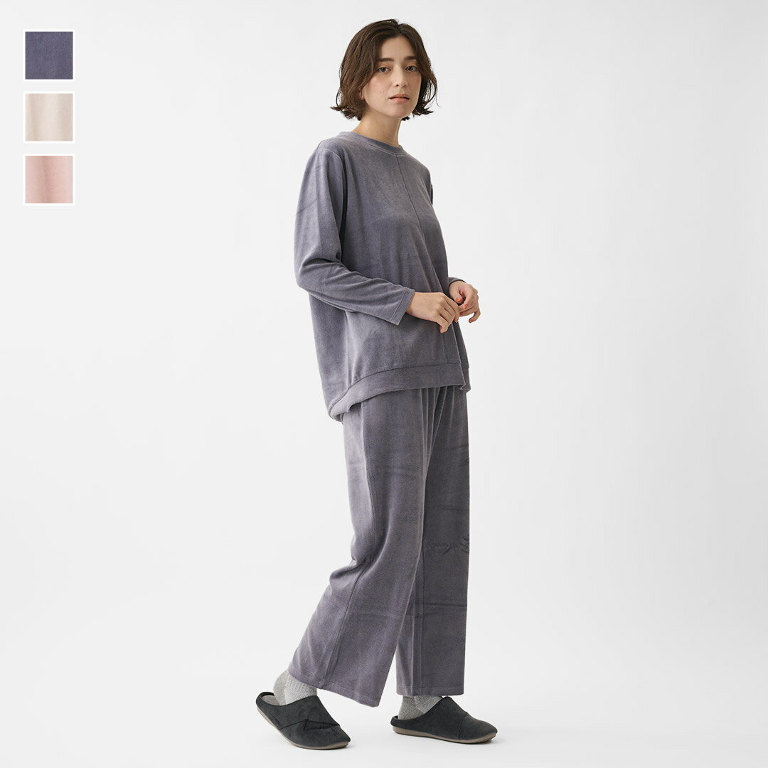 【KEYUCA公式店】ケユカリラックスウェア 内側綿ベロア長袖セット[トップス ボトム 上下 セット 長袖 部屋着 ルームウェアパジャマ あったか 防寒 リラックス レディース 30代 40代 50代 おしゃれ 通販]
