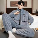 パジャマ メンズ 極厚 フランネル ふわふわ 保温 防寒 あったか ルームウェア 上下セット フルジップ 秋冬 長袖 ロングパンツ 部屋着 伸縮性 クルーネック ティーン 男性用 ワンマイルウェア 快適