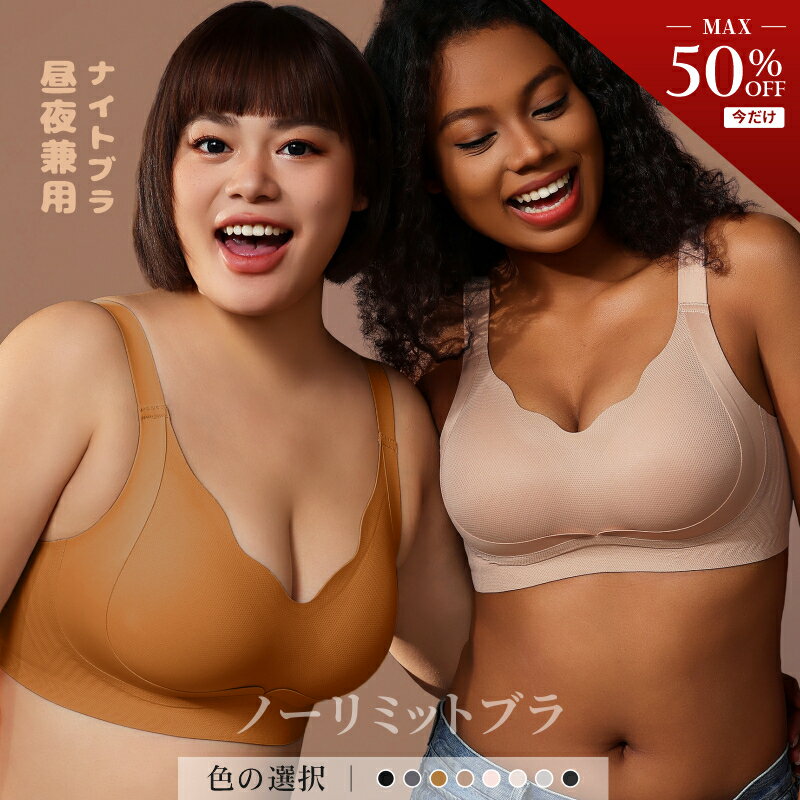 【50%OFFクーポン限定200枚】ノンワイヤー ブラ ナイトブラ 昼夜兼用 ノーリミット ブラジャー シームレス育乳 下着 レディース スポーツ ブラ トップ 谷間メイク 背肉 わき肉 背中 盛り 盛れる バストアップ キープ Eカップ A会場