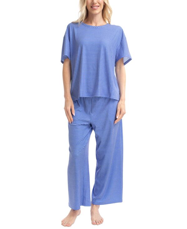 ムクルクス レディース アンダーウェア ナイトウェア リブ MUK LUKS Women's Nautical Ribbed Lounge Pajama Set Blue Stripe ブルー