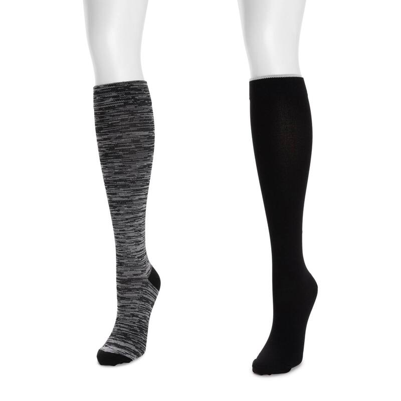 ムクルクス レディース アンダーウェア 靴下 コットン Women's MUK LUKS Cotton Compression Knee-High Socks 2-Pack Ebony