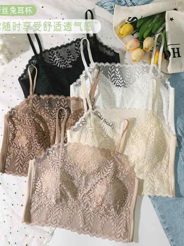 女性 下着 薄型 Demeirui 6050 セクシー レース 露出 防止 チューブ トップ 下着 女性 薄型 ウサギ 耳 クリスタル カップ 美しい バック ラップ ブラ