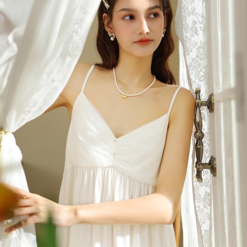 ネグリジェ レディース キャミソール セクシー プリンセス 宮廷風 フレンチスタイル かわいい ショート丈 ワンピース パジャマ ルームウェア 部屋着 再生繊維 レーヨン 接触冷感 涼しい 通気性 快適な肌触り 春夏 ホワイト ピンク