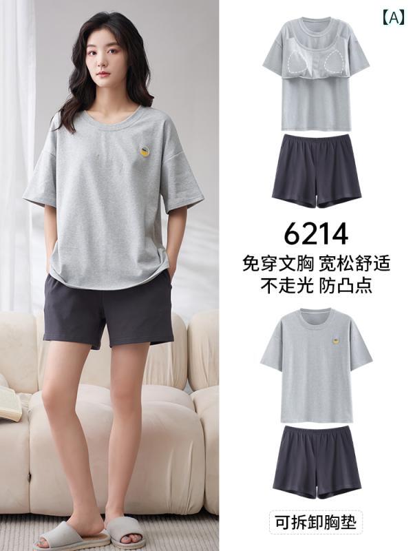 薄手 涼しい レディース パジャマ キャットマン パジャマ レディース 夏用 綿 胸 パッド 付き 薄手 半袖 2025新 スタイル 外出 着 ホーム 服 スーツ