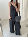 タンクトップ レディース 韓国風 Vネック ノースリーブ トップス 無地 麻混紡 普段使い 中長丈 ホワイト グレー