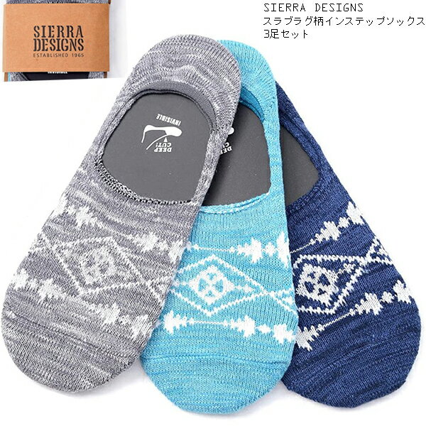 (シェラデザインズ) SIERRA DESIGNS 靴下 3setsocks インステップ ソックス 3足セット (131-1025) スラブラグ柄 オルテガ柄 滑り止め機能 ローゲージ編み アンクル スニーカー フットウェア アメカジ アウトドア 25-27cm