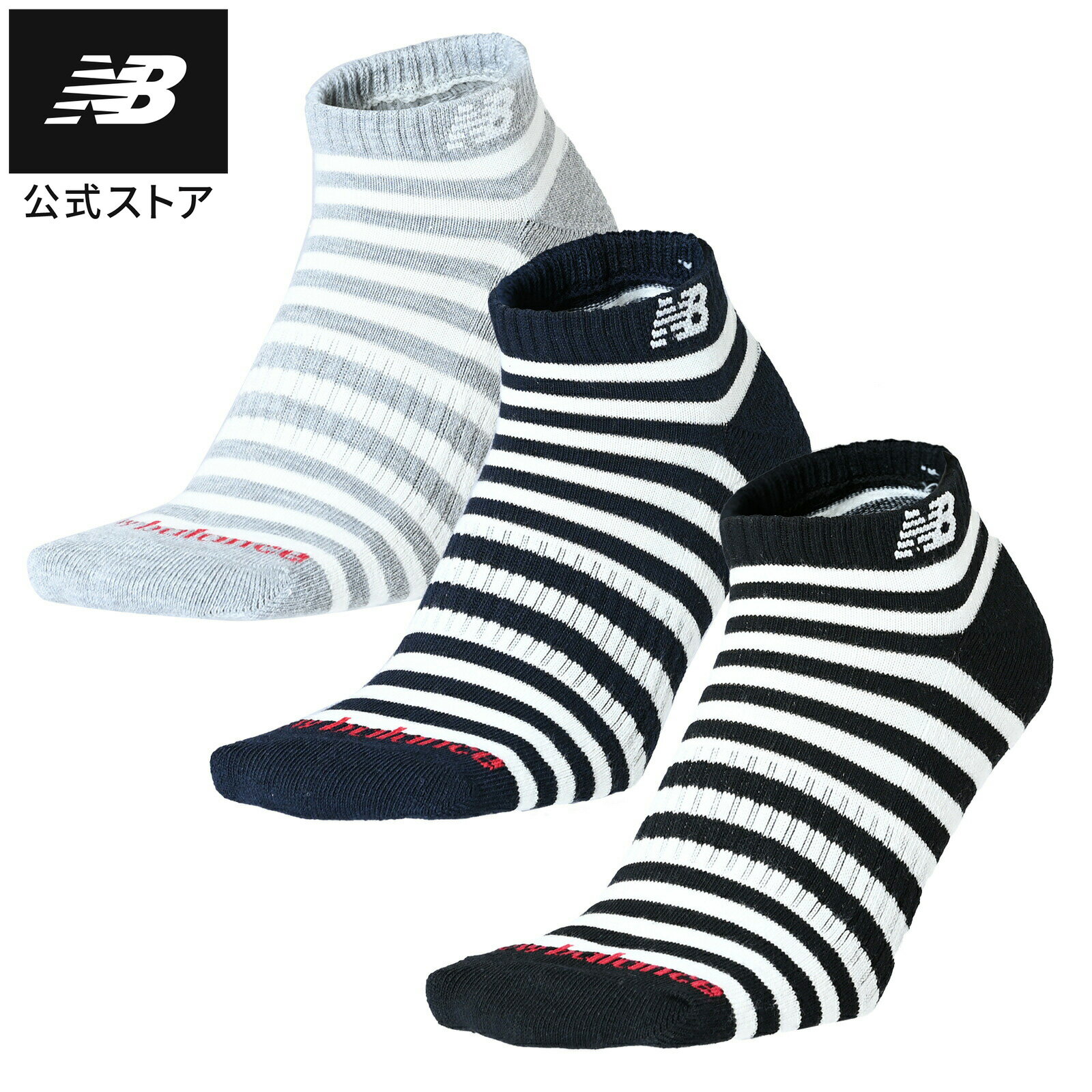 ニューバランス 靴下 3足組 メンズ レディース Newbalance スニーカーレングス3Pソックス 23-29cm ユニセックス ボーダー柄 くるぶし下 スニーカーソックス スポーツ カジュアル アクセサリー くつ下 くつした 男女兼用 黒 グレー ネイビー ブランド アパレル/LAS35703-AS2
