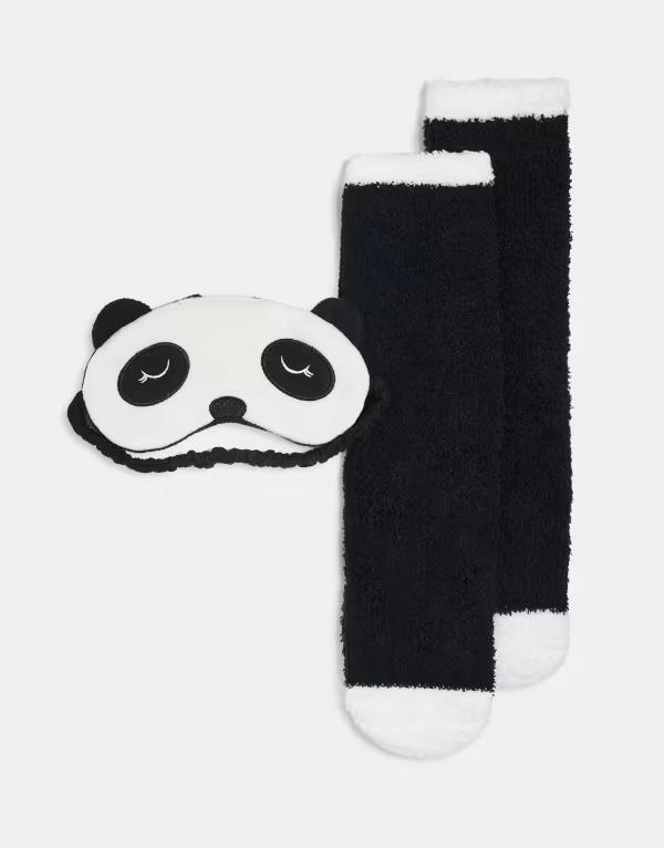 ブレーブソウル レディース アンダーウェア 靴下 Brave Soul novelty fluffy panda bed socks and eye mask with ears and Black ブラック