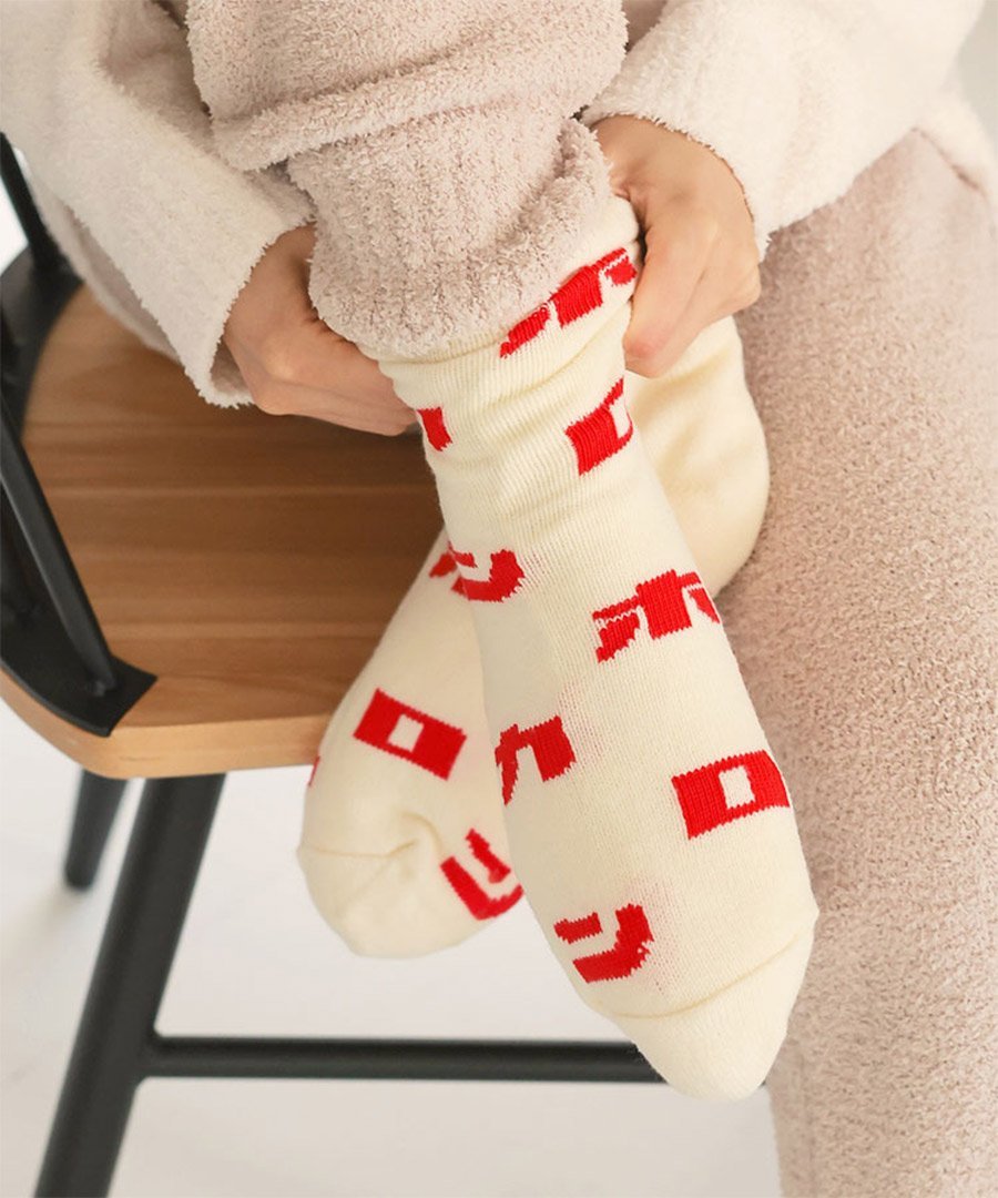 Donoban ホカロン ロゴルームソックス ドノバン 靴下・レッグウェア 靴下 ホワイト レッド