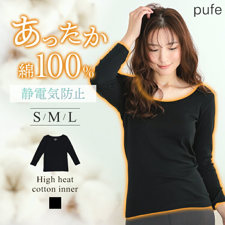 ■商品名 pufe ハイヒートコットンインナー ■サイズ(cm) 【S】 身幅 約36、肩幅 約32.5、袖丈 約46、着丈 約59 【M】 身幅 約37、肩幅 約33、袖丈 約46.5、着丈 約59.5 【L】 身幅 約38、肩幅 約34、袖丈 約48、着丈 約63 ※平置き採寸のため若干のブレがございます。 ■生地感 透け感:なし、裏地:なし、伸縮性:あり、ポケット:なし ■カラー ブラック ■素材 コットン 100% ■商品説明 発熱素材の中で化学繊維はメインですが、綿100%を使用しており保温性があり蒸れにくく肌触りもふっくら柔らかいアイテム。 化学繊維とは比べ物にならないほど、着る瞬間から温もりを感じられ、静電気も起こりにくいです。 タグなどでチクチク感を軽減するために、品質表示を転写プリントに。 お肌への優しさにとことんこだわったハイヒートコットンは、天然素材が好きな方や敏感肌さんに向けた最適なアイテムです。 9分袖になっているので、袖口からハイヒートコットンインナーが覗く事はありません。 背伸びをしたり、しゃがんだ時も背中が見えない安心の長め着丈で、ボトムスにもしっかりインできます。 襟ぐりが少し広く深めに設計しているので、どんなトップスにも合わせやすいので寒い時期のインナーとしてオススメです。 ■モデル身長 詳細は商品画像をご覧ください。 ■ご注意 ■入荷時期によりお色、長さが多少異なる場合がございます。 ■撮影場所やイメージにより実際の商品と色味が若干異なる場合がございます。商品のお色味はカラーバリエーション画像をご参照ください。 ■なるべくきれいな状態で発送致しますが、製造工程上、輸送の際の汚れや擦れ等が若干見られる場合がございます。 ■雨、摩擦により色落ちする場合がございます。 あらかじめ上記事項をご理解ご了承のうえ、お買求めくださいませ。