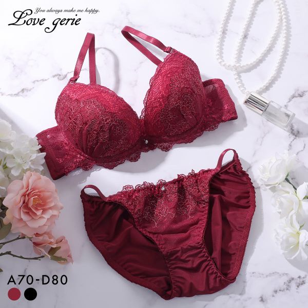ラブジェリー ロイヤルブルーム ブラセット ABCD 盛り胸 Wパッド 谷間ブラ バストアップ ブラジャー ショーツ セット Love gerie レディース 全2色 A70-M-D80-L