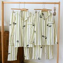 パジャマ ペアパジャマ 上下 セット 上下セット セットアップ ルームウエア ペアルック レディース メンズ 寝巻き 綿100% 春 秋 長袖 パンダ ストライプ柄 前開き ウエストゴム Vネック 胸ポケット付き ガーゼ ペア カップルパジャマ 夫婦 ナイトウェア シャツ パンツ