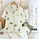 パジャマ レディース ダブルガーゼ 綿100% 可愛い パンダ柄 前開き 半袖 ルームウェア 短ズボン上下セット ガーゼパジャマ 2重ガーゼ 春 夏 薄手 かわいい 部屋着 通気性 コットン100% 可愛い 大人用 女性 ギフト プレゼント