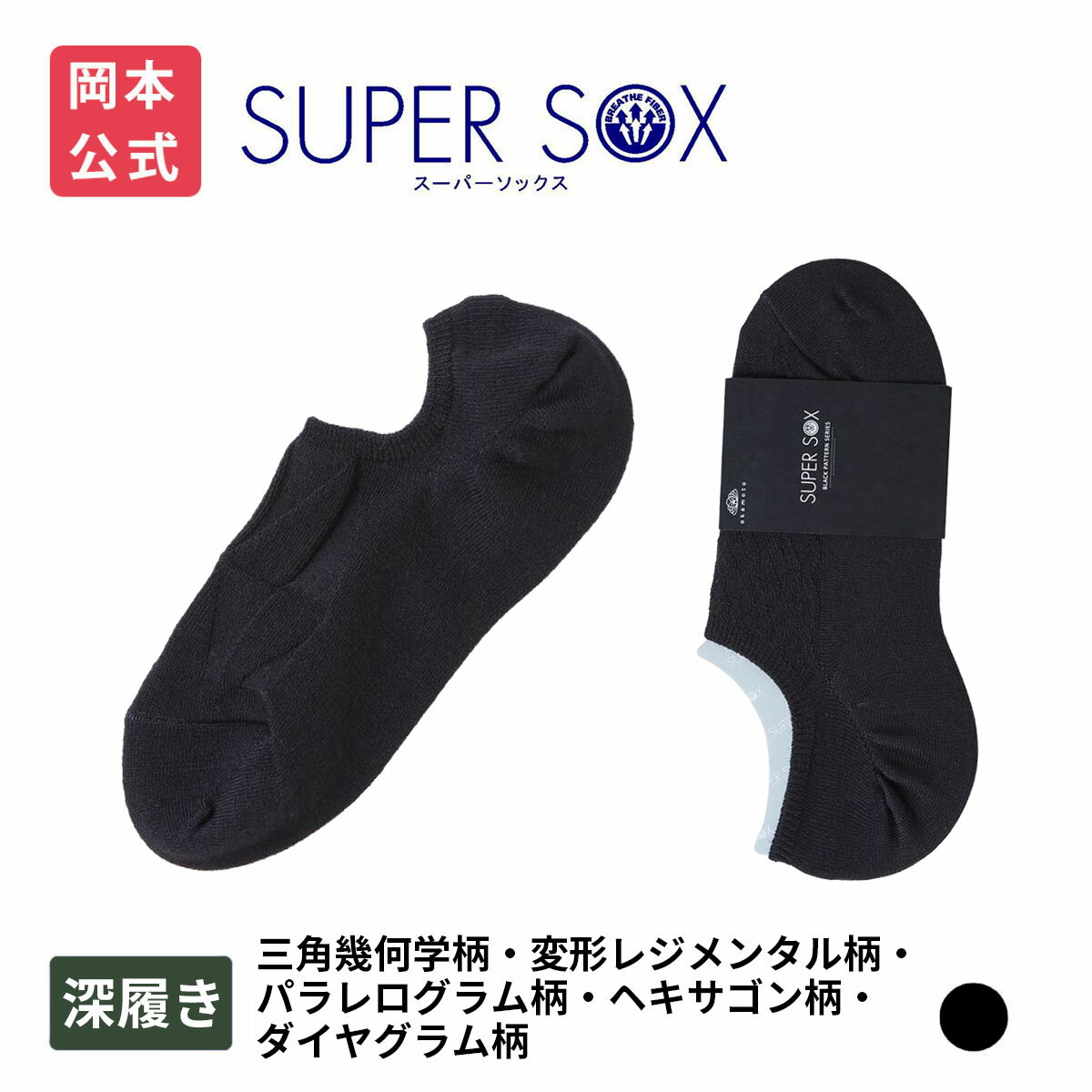 期間限定20%OFF 【靴下の岡本公式】【WEB限定】SUPER SOX BLACK カバーソックス (三角幾何学柄、変形レジメンタル柄、パラレログラム柄、ヘキサゴン柄、ダイヤグラム柄) | 靴下 消臭靴下 蒸れない 消臭 ビジネス ビジネスソックス メンズソックス 防臭 臭わない ソックス