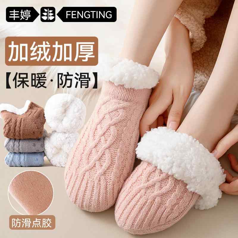 ルームソックス 女性用 秋冬 厚手 起毛 暖か ふわふわ ラムウール風 家居用 睡眠用 足元保湿 産後ケア 柔らか素材 伸縮性 室内履き くつ下 暖足 コットン混 滑り止めなし ゆったりフィット