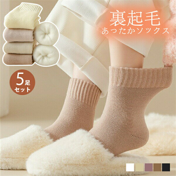 5足セット裏起毛レディース靴下あったかグッズ厚手保温あったか裏起毛カバーソックスフリーサイズくつしたかわいいフットカバースニーカーソックスブラウンブラックホワイト送料無料