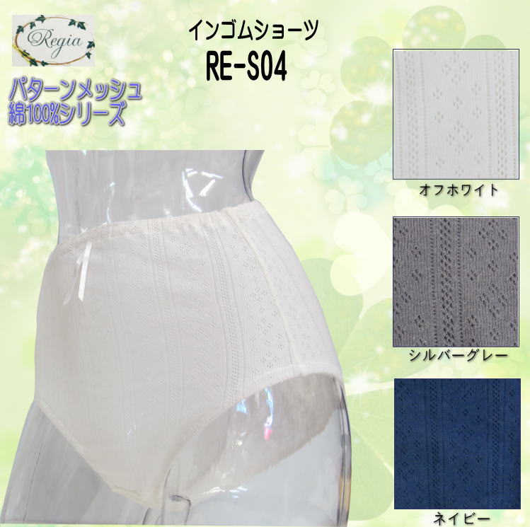 Regia インゴムショーツ コットン100% パターンメッシュ (針抜き 肌着)日本製 メール便3点まで ギフト お腹すっぽり 綿100% Re-S04 【K】