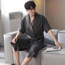 バスローブ メンズ 夏用 綿 半袖 ミドル丈 ゆったり 大きいサイズ 通気性抜群 涼しい 快適 パジャマ ルームウェア お風呂上がり 襟付き