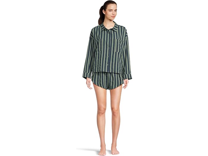 (取寄) ハニーデュー インティメイト レディース ブランチ デート ロング スリーブ ショーティ Pj セット Honeydew Intimates women Brunch Date Long Sleeve Shortie Pj Set Royal Stripe