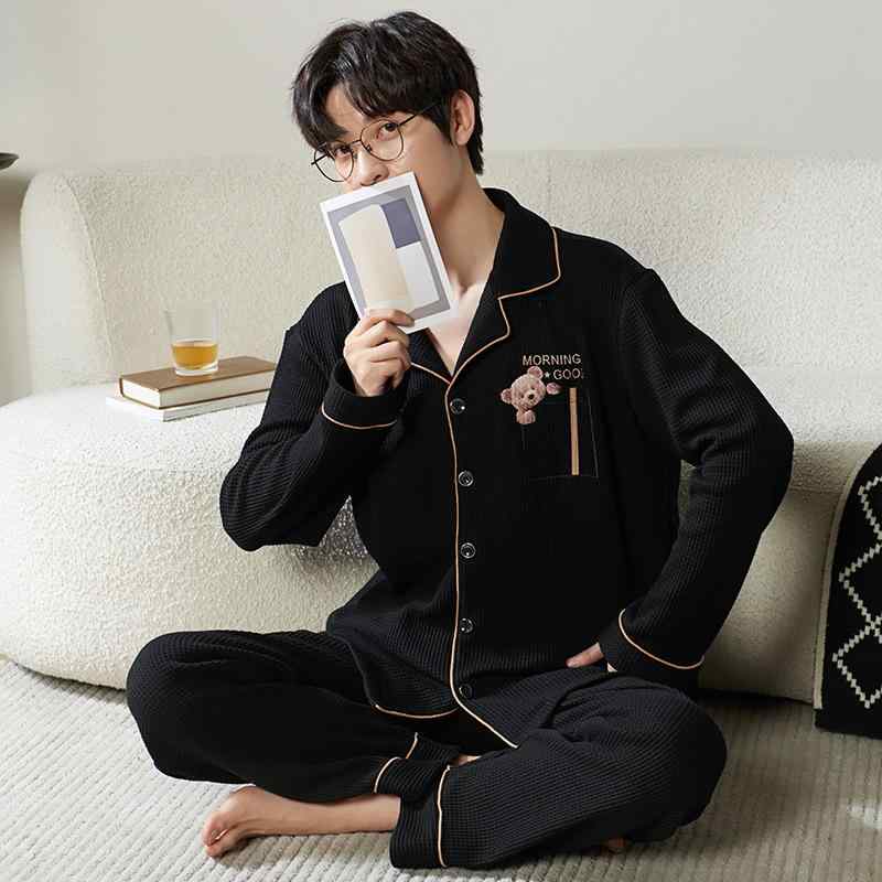 ・カテゴリ: セットアップ・主な素材: 綿90-95%・生地厚: 181-200g/m²・ネックライン: 襟付き・袖丈: 長袖・パンツ丈: フルレングス・特徴: カジュアル、ルームウェア、外出可能、快適・対象: 青年男性・シーン: ルームウェア・サイズ展開: L、XXL、XXXL・スタイル: カジュアル