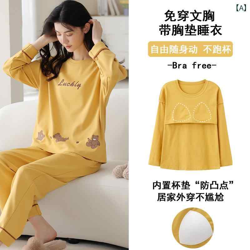 薄手 涼しい レディース パジャマ 女性用 綿 パジャマ 長袖 春秋 2025年新 スタイル 胸 パッド 付き 屋外で 着用 可能 夏の ホーム 服 スーツ