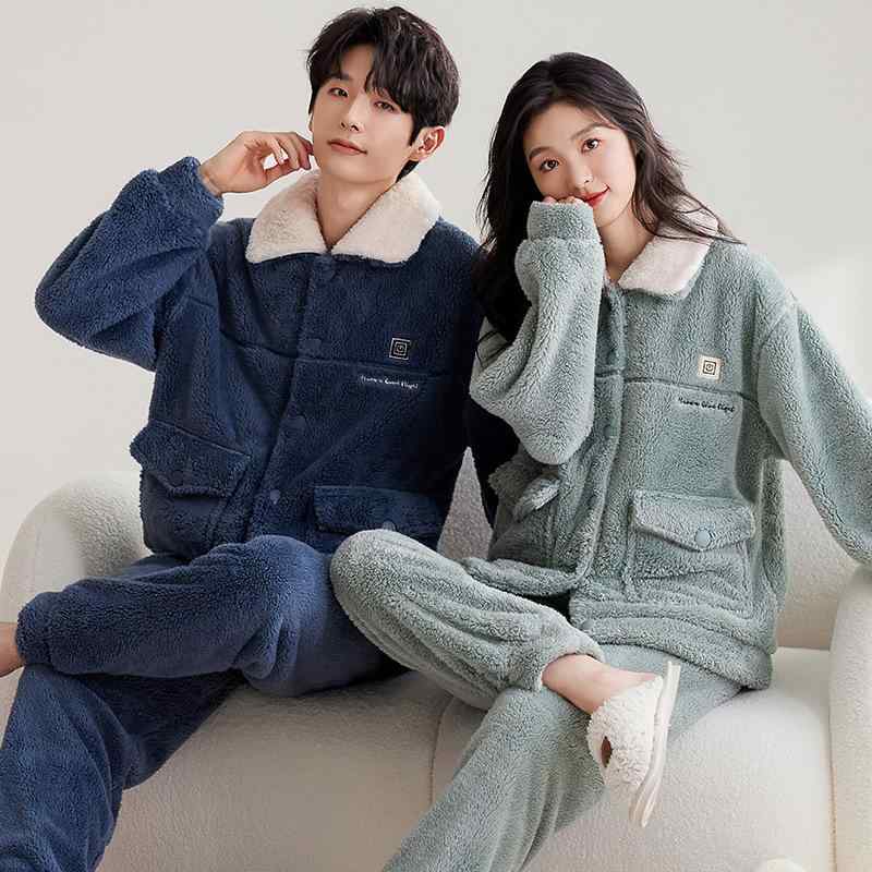 パジャマ メンズ レディース コーラルフランネル 長袖 ハイネック 厚手 ロングパンツ 保温 通気性 快適 カジュアル 部屋着 秋冬 ホームウェア アウトドア セット ポリエステル リラックス