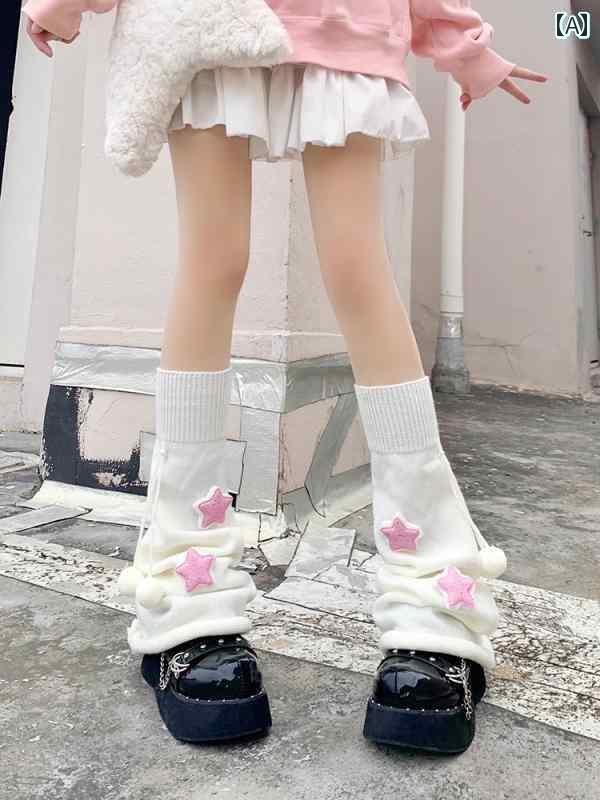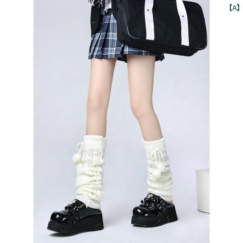 ソックス レギンス サポーター ニット ソックス 重ね 履き ロリータ キュート 毛 玉 レッグカバー 付き JK ミドル 丈 ワイド レッグ フレア ホワイト レディース