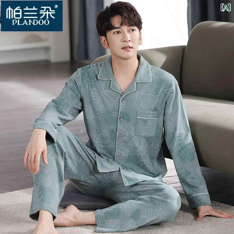 パジャマ 男性 春秋 金 100 % 純綿 長袖 秋冬 金 青年 男性 金 秋冬 綿大 サイズホームウェア