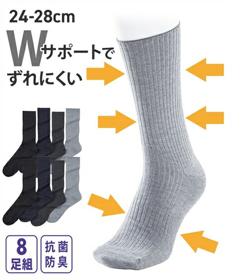 靴下 メンズ 抗菌防臭 銀イオン加工 Wサポート 無地 ソックス 8足組 24.0〜26.0/26.0〜28.0cm ニッセン nissen