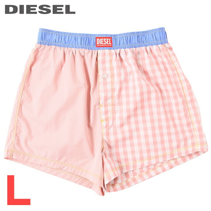 ■DIESEL ディーゼル メンズ■ウエストゴム チェック柄 切替 トランクス パンツ 下着 アンダーウエア【UUBX-STARK】【サイズL】【ピンク】die-m-i-f4-u74 《_メーカー希望小売価格6,380円》