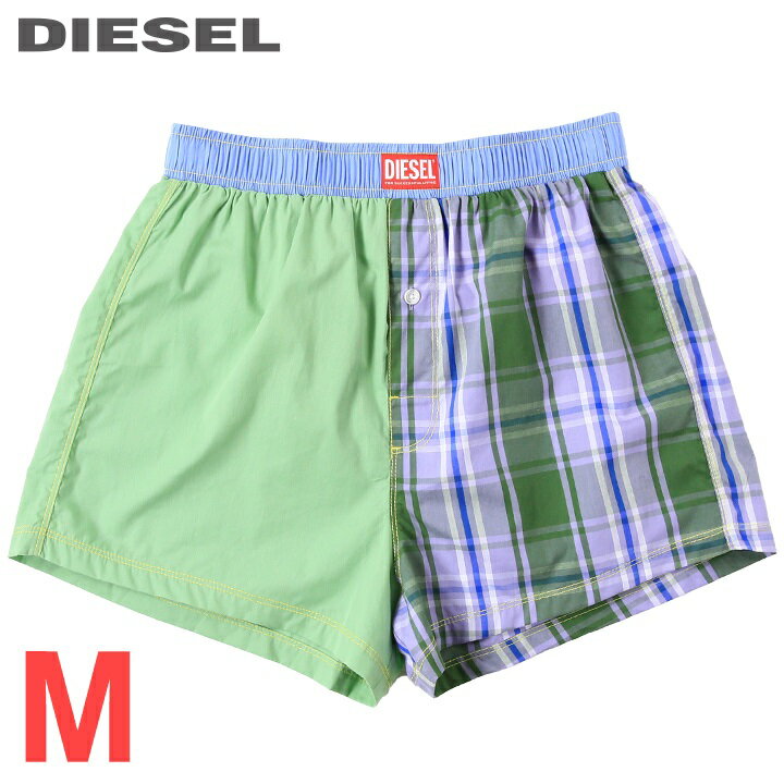 ■DIESEL ディーゼル メンズ■ウエストゴム チェック柄 切替 トランクス パンツ 下着 アンダーウエア【UUBX-STARK】【サイズM】【グリーン×ブルー系】die-m-i-f4-u77 《_メーカー希望小売価格6,380円》