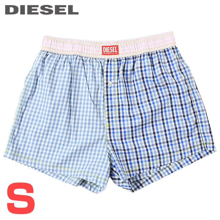 【エントリーでポイント5倍!】■DIESEL ディーゼル メンズ■ウエストゴム チェック柄 切替 トランクスパンツ 下着 アンダーウエア【UUBX-STARK】【サイズS】【ブルー×ピンク系】die-m-i-f8-u43 《メーカー希望小売価格7,480円》