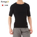 【日本製】Runtage(ランテージ) アスリートコンプレッションPRO 着圧トップス 4分袖 スポーツインナー メンズ/レディース ブラック M/L 着圧インナー 加圧インナー コンプレッションインナー(メール便不可)
