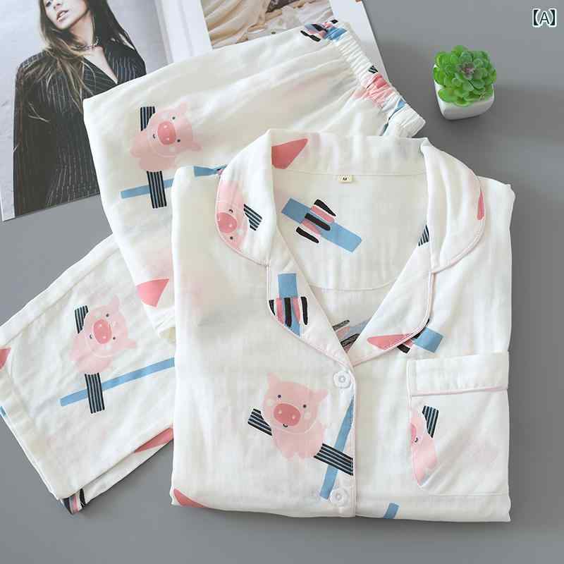 ママ パジャマ レディース パジャマ 綿 秋 二 重 ガーゼ レディース 薄手の 長袖 春夏 カーディガン ホーム 服 快適 セット