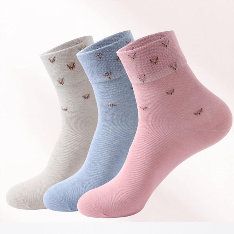 ソックス 靴下 レディース 女性用 綿 防臭 吸汗速乾 ミドル丈 クルー丈 厚手 秋冬 スポーツ カジュアル ジャガード織り 締め付けない ゆったり口ゴム 花柄 ボタニカル柄