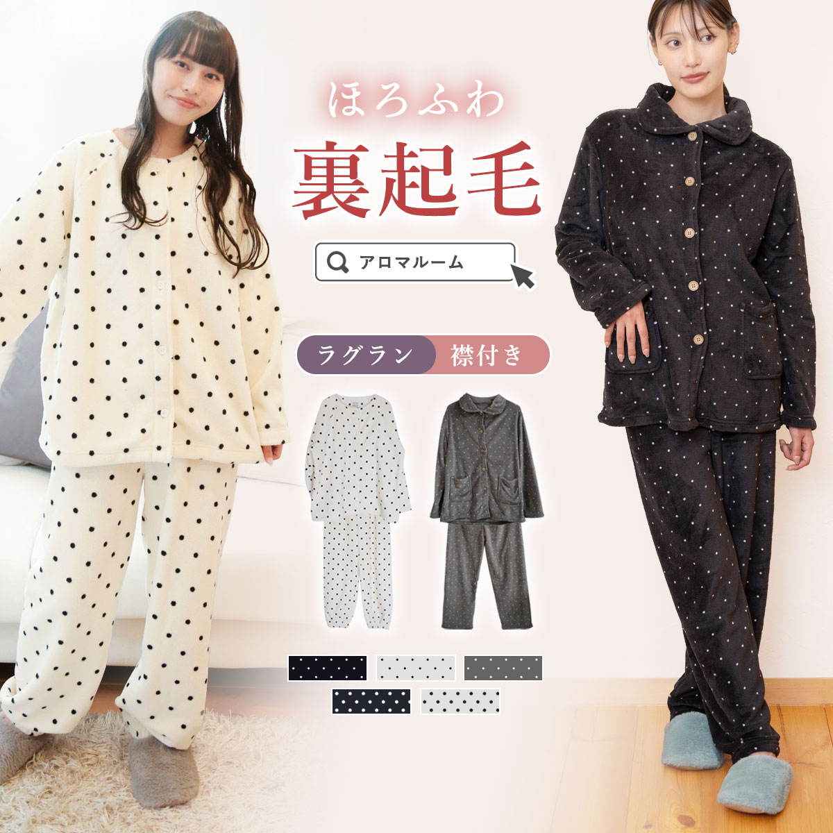ルームウェア レディース 部屋着 【 ドット柄 パジャマ 】 おしゃれ 長袖 秋 冬 ゆったり かわいい 秋冬 上下 パンツ セット トップス 前開き あったか 裏起毛 セットアップ 薄手 もこもこ 授乳 上下セット春 ギフト プレゼント 敬老の日
