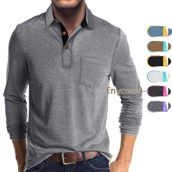 メンズポロシャツ 長袖 無地 ゴルフシャツ 長袖ポロシャツ ポロ トップス 胸ポケット付き 通勤 通学 おしゃれ 春秋