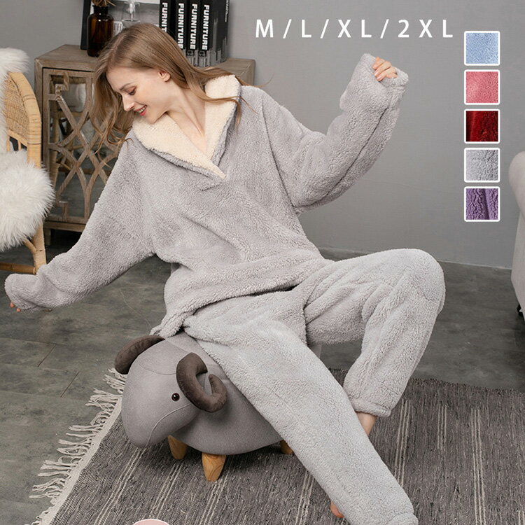 もこもこルームウェア レディース パジャマ 上下セット マイクロファイバー あったか 秋冬 部屋着 寝間着 厚手 ルームウェア 無地 ボア 長パンツ 長袖トップス ふわもこ プルオーバー もこボアルームウェア 冬 寝巻き 保温防寒 M/XL/2XL 送料無料 静電気防止 家庭洗濯