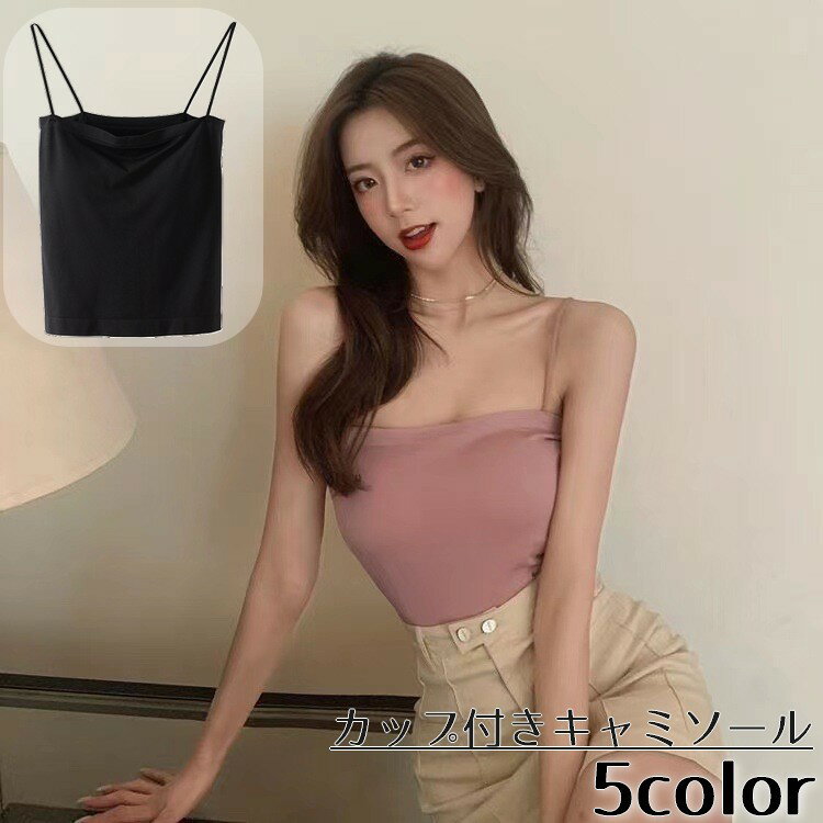 キャミソール レディース パッド付き タンクトップ ノンワイヤー ブラトップ チューブトップ 無地 ストレッチ 細ストラップ ショート丈 ショートキャミ インナー トップス 柔らかい 伸縮性 シンプル 薄手 夏新作