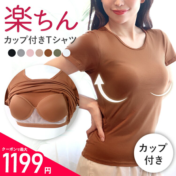 \最大1199円★クーポン利用で/ブラトップ カップ付き Tシャツ カップ付きTシャツ 半袖 トップス レディース 無地 カップ付きインナー インナー Tシャツインナー トップス ルームウェア ノンワイヤー 大きいサイズ 締め付けない 下着 ストレッチ さらさら 速乾 送料無料